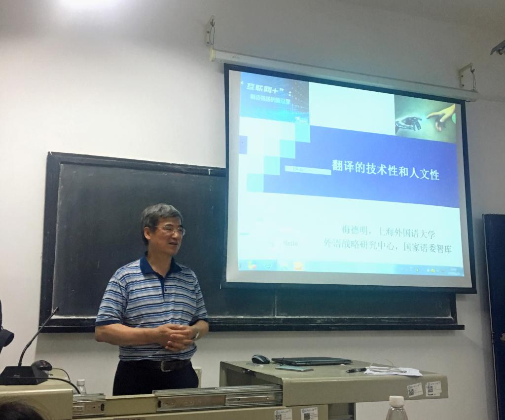 2018年6月29日晚上7点半,上海外国语大学梅德明教授受taptap点点外国语学院邀请在金盆岭校区9教407进行了题为“人工智能时代翻译的技术性与人文性”的学术讲座,外国语学院院长段胜峰教授主持此次讲座。