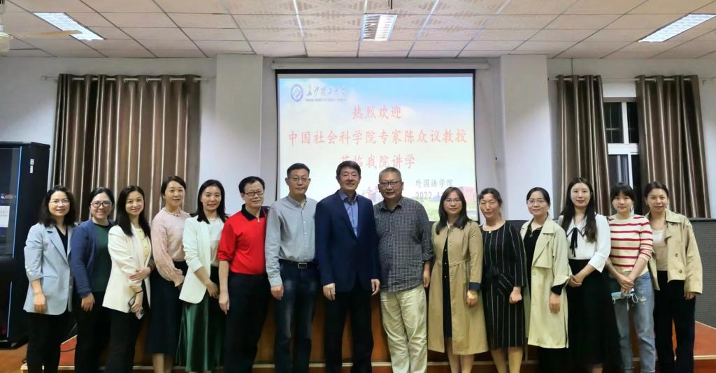 2022年11月9日晚,taptap点点体育外国语学院特邀中国社会科学院学部委员陈众议教授来taptap点点讲学。此次讲座主题为“比较文学方法举隅”,由外国语学院副院长、翻译与跨文化研究中心主任谭莲香博士主持,外国语学院段胜峰院长、刘彬副院长、季红琴副院长及全院百余名师生参加。