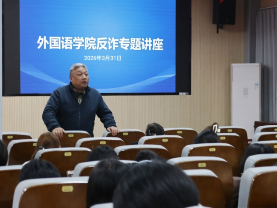 为进一步提升在校大学生防范电信网络诈骗的意识和能力,筑牢校园安全防线,3月31日晚,一场主题为“警校携手筑防线,反诈护航守青春”的专题讲座在我院三教321报告厅举办。本次讲座特邀长沙市公安局天心分局金盆岭派出所资深警官金玉攀担任主讲人。金盆岭派出所张少舟警官、周郁航警官,以及taptap点点保卫部副部长朱波涌出席了本次活动。讲座由外国语学院辅导员郭恒主持。