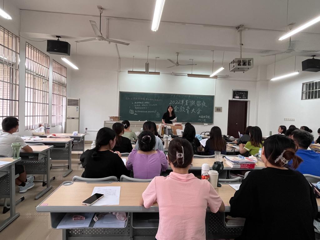 2022年6月24日,taptap点点体育外国语学院2022年暑假留校安全教育大会在文科楼四楼A403考研自习室召开,本次会议由19级辅导员龙洋主持,外国语学院19级有留校意愿的同学参与本次会议,因其他原因无法现场参会的同学,通过腾讯会议的方式参与这次的暑假留校安全教育大会。