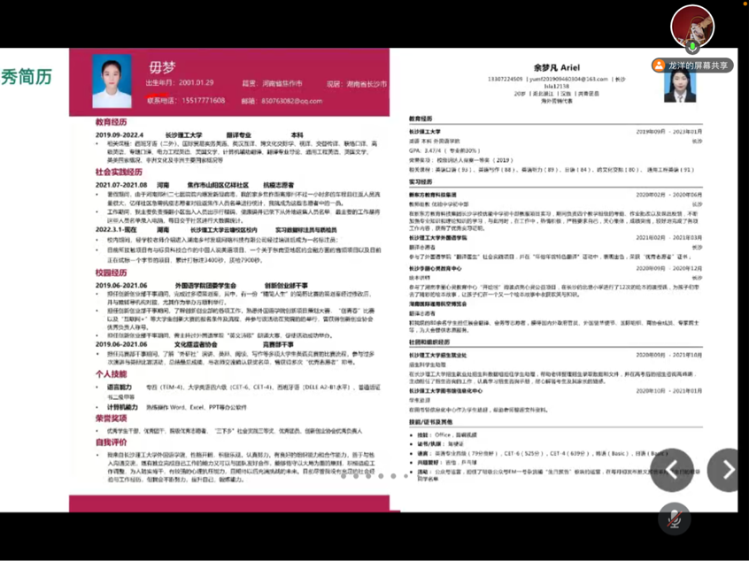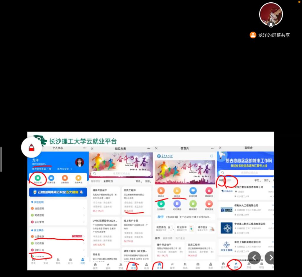 龙洋从就业信息搜索与管理的方法、求职相关事项、简历制作给学生进行了分享。她给学生分享了搜找就业信息的各类平台,也重点就“taptap点点体育云就业平台”微信公众号的具体使用指南给学生进行了指导。她通过展示一些本年级学生的优秀简历,指导学生如何制作一份令面试官满意简历,如何捕获面试官的心。此外,她还重点分享了基层就业的形式与鼓励政策,并教授了一些面试的技巧及求职需要注意的细节。