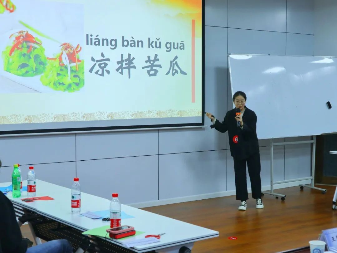 段茹青同学的授课主题为《味在中国》。她采用了情景剧的模式,让留学生们扮演食客。课堂中,她将教学重点放在了中国菜的五种基本味道,即“酸、甜、苦、辣、咸”,引导留学生们用“形容词+的”的句式结构造句。互动环节,留学生们热情高涨,看着老师拿出奖品,他们争先恐后地用味道的形容词造句,在互动中进一步理解了本堂课的知识。