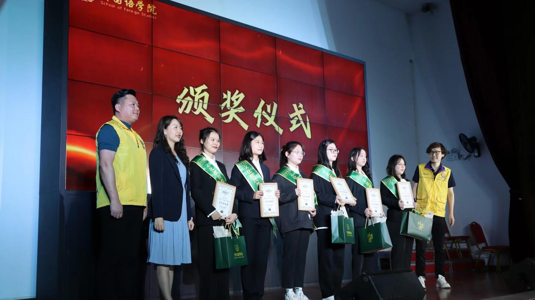 颁奖典礼上,外国语学院党委书记文丽丽代表学院接受社会爱心人士捐赠。外国语学院院长段胜峰教授致辞,他向社会爱心人士的义举表示衷心感谢,并就学院在人才培养、学科建设、社会服务等取得的成就进行介绍,希望每位外语师生都能为文化摆渡事业注入新动力,不负青春韶华,怀家国、担重任、干实事。