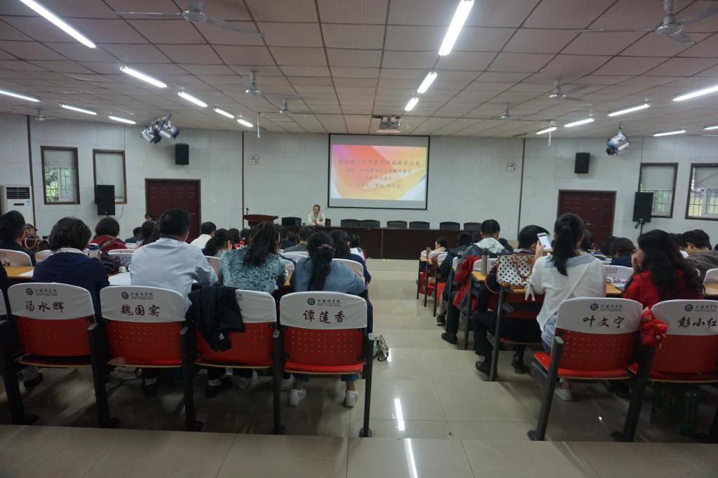 2018年10月9日下午,由taptap点点体育高等教育教学评估与研究中心及教务处主办、外国语学院承办的taptap点点体育第十四届教学沙龙活动在文科楼圆厅A100成功举办。本次教学沙龙特邀华中科技大学《高等教育研究》杂志副主编曾伟研究员主讲,我校高等教育教学评估与研究中心主任袁剑波主持,外国语学院院长段胜峰、副院长黄坚、黄月华、武俊辉出席,外国语学院全体教师以及来自学校其它16个教学院共200余名教师代表参加。