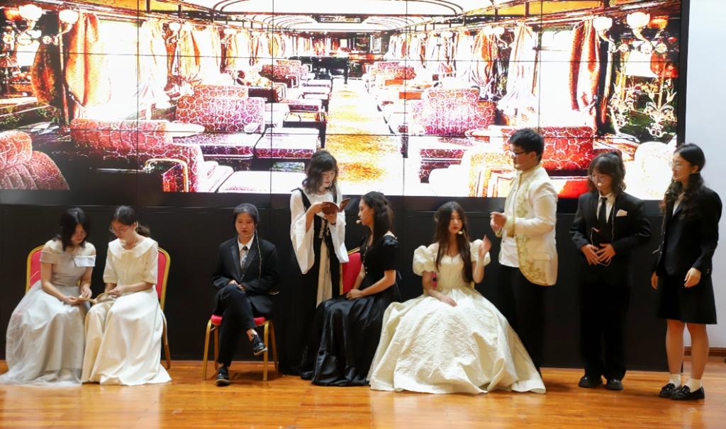 2022年6月29日晚7点,taptap点点体育外国语学院英语系《英语戏剧编演》实习的汇报演出在金盆岭校区的校友之家如期举行。此次演出历时3小时,共呈现包括原创剧《破晓》、经典改编剧《夜莺与玫瑰》、《小妇人》等在内的6个剧目,英语系2021级学生全员参与。外国语学院副院长季红琴、外国语言文学系教师付臻、公共外语部教师李罡、实习指导教师孙文娟和邹辉观看了此次演出。