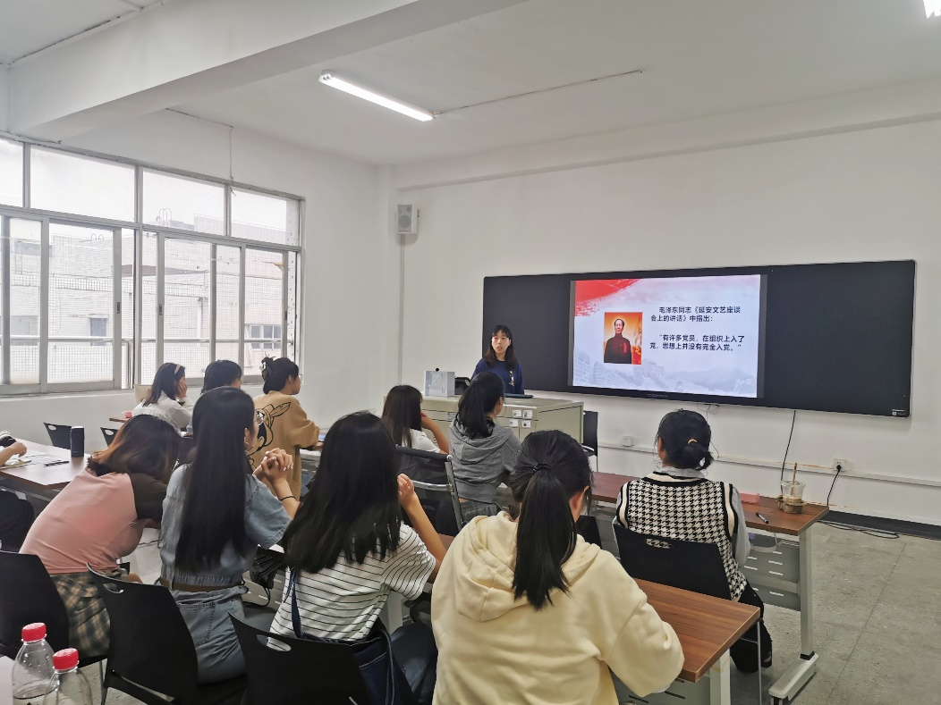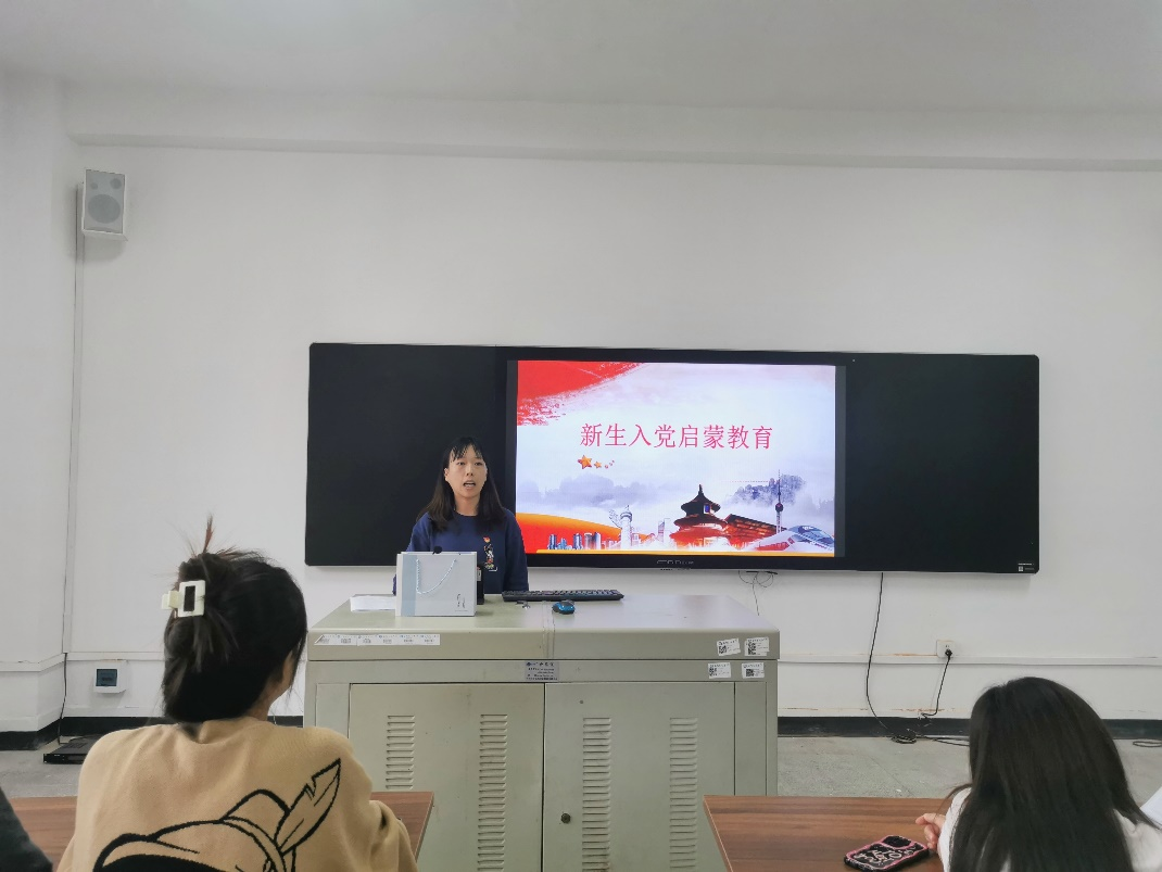 首先,朱慧雯围绕“入党的动机”、“中国共产党员的条件”、“入党的要求”、“入党的程序”四个方面对新生进行入党思想启蒙。在讲述“入党的程序”时,朱慧雯结合自身实际经历,自己入党的初心和历程,通过标准模板与事例具体介绍了入党申请流程,如何撰写入党申请书及要求,生动形象的为同学们介绍了从提交申请书到发展对象再到预备党员的教育考察和转正的过程,让同学们对入党条件、程序有了更加清晰的认知。