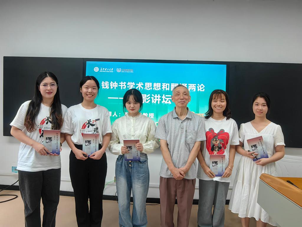 课堂上,郑教授悉心向同学们阐述了近代著名作家钱钟书先生恢弘磅礴的文学观,对钱钟书的“十六字真言”——“东海西海,心理攸同,南学北学,道术未裂”进行了解读,并用具体的例子分别论述了钱钟书的翻译两论,即翻译“化境”论以及译作“反胜原作”论。“俗话说,人生分四阶,问学在四季,一日有四时,三者各有其时,求学其间,四季自有花开,自有果落。亲爱的同学们一定要在最好的时光、最美的校园好好享受读书的滋味。也希望同学们能够认真学习和研究钱钟书的学术理念和翻译两论,并以钱钟书为榜样,刻苦努力地进行翻译实践,且使自己的译作达到‘化境’,甚至能够‘反胜原作’!”郑教授以讲解赏析钱钟书的译文为契机,为同学们寄语道。