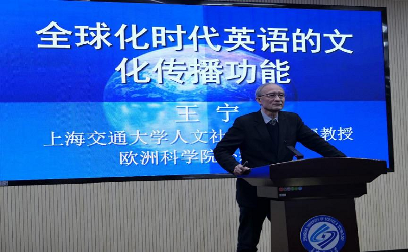 王宁教授的讲座围绕全球化语境下英语的文化传播力展开,他的论述主要涵盖两个方面:全球英语的形成以及其在文化传播中的关键角色。讲座伊始,王教授从英语的广泛应用切入,分析了全球英语的演变进程,指出其作为全球化时代的语言中介所具有的独特优势。他进一步提出,文化全球化加速了中西方文化的互动交流,也为中国文化走向国际提供了前所未有的机会。