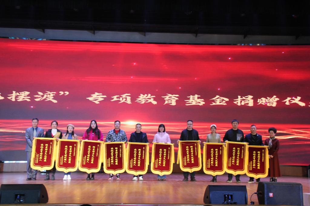 典礼现场,外国语学院领导与英语专业89级校友代表、三号教学楼建设伙伴、广东狮子会各服务队代表开展捐赠仪式。学院向捐赠方赠予锦旗,感谢他们用爱心助力文化摆渡,推进校企共育时代新人。2021年,在广东省佛山市三水区白坭镇党委书记喻晓坤先生及广东狮子会会长邱军先生等一众社会爱心人士支持下,学院创立了“文化摆渡”专项教育基金,广东狮子会11支服务队的代表们也莅临现场指导。