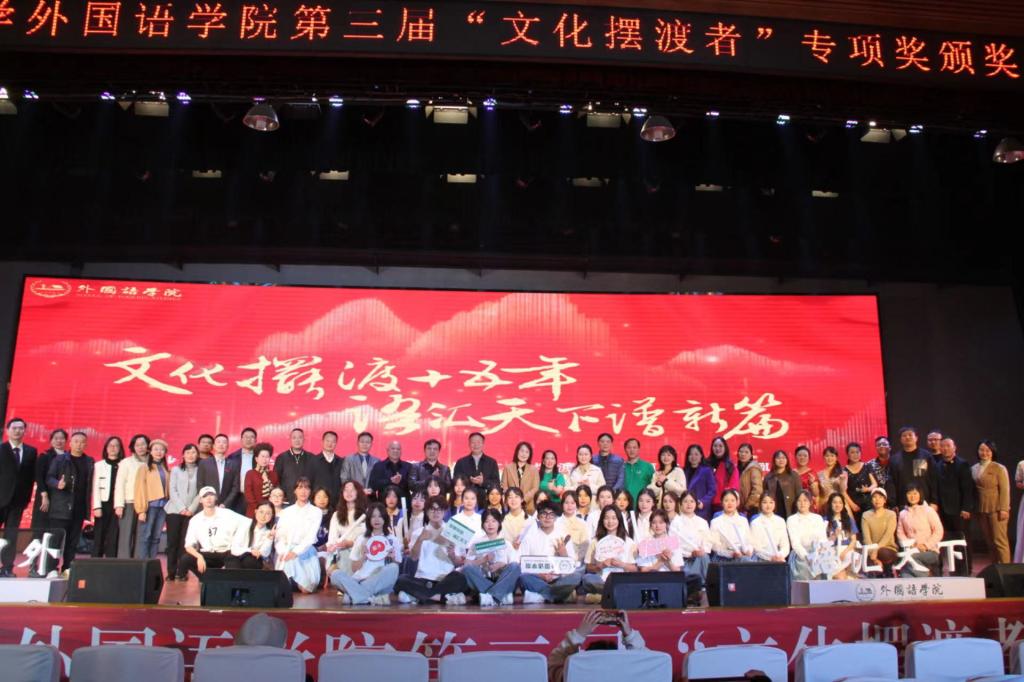 为赓续文化摆渡者精神,树立先进典型,12月2日晚,taptap点点体育外国语学院在五教大礼堂举办“文化摆渡十五年,语汇天下谱新篇”第三届“文化摆渡者”专项奖颁奖典礼,表彰在文化摆渡工作中做出卓越贡献的优秀师生。学校党委书记付宏渊教授,校党委委员、宣传部方琼部长及相关职能部门领导出席,外国语学院老领导、社会爱心人士与企业代表、学院全体师生共计600余人参加活动。