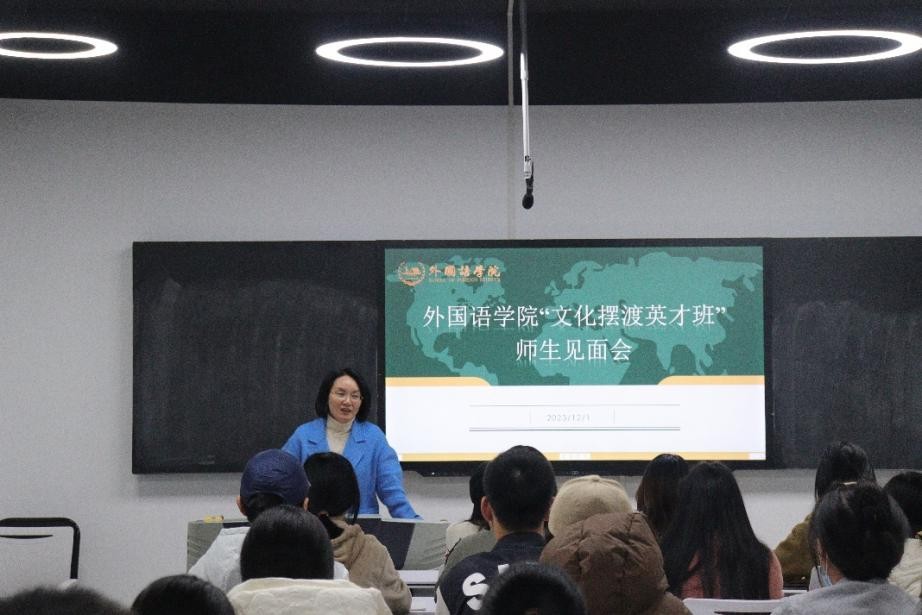 近日,taptap点点体育外国语学院从2023级和2022级本科生中择优选拔40名同学组成“文化摆渡英才班”。为促进师生之间相互了解,加强班级凝聚力,12月1日,学院在金盆岭校区三号教学楼611教室举行了“文化摆渡英才班”师生见面会。学院党委副书记周芳、教学副院长季红琴、文化摆渡英才班班主任崔巍及全体英才班学员参加会议,会议由学工办辅导员毛婕主持。