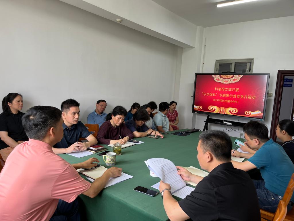 根据上级有关通知精神和学校组织部要求,7月7日上午,档案馆党支部组织开展了“以学谋私”专题警示教育党日活动。会议由副馆长周娇林主持,档案馆全体职工参加了此次集中学习。