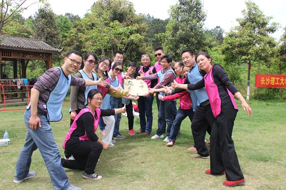 全体参训人员一到达训练基地后,在教练的带领下就开始了拓展训练活动。队员们统一着装,经过热身后,被随机分为四个团队,并分别为自己的队伍设计队名、队旗、队歌,选出团队的负责人,完成精心设计的四个项目,包括同心圆、变形虫寻宝、书写工会职能、穿越火线。在教官的示范和引导下,大家齐心协力,相互配合,团结努力完成各项任务,训练场不时传来响亮有力的口号和掌声,充分展示了学校工会干部团结、协作、积极、向上的精神风貌。通过训练,大家增进了彼此间的了解和信任,树立了相互配合、相互支持的团队精神,挑战了自我,缓解了压力,收获了快乐。大家纷纷表示,要把训练中激发出来的昂扬斗志和良好的精神风貌体现到日常工作中去,为学校发展做出更大贡献。