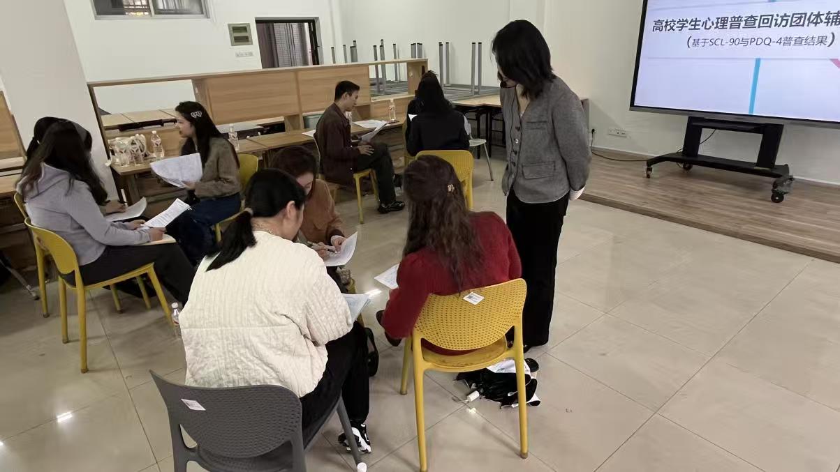 为做好2025年秋季学期学生心理普查回访,提升普查回访科学性和有效性,学工部于11月3日14:00,在团体辅导室205组织召开了心理普查回访技术提升团体辅导。此次团体辅导由心理中心主任易敏带领,中心专职教师及学院心理辅导员参加,学工部副部长陶传谱出席。