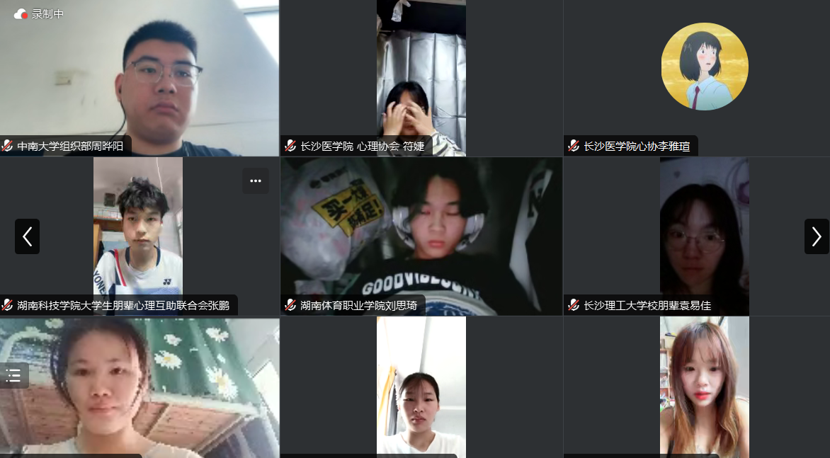 以“情绪舒郁结,心灵焕新生”为主题的湖南省高校心理健康教育学生组织交流会,于4月27日上午9时,采用视频会议的方式,顺利召开。