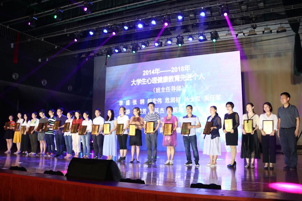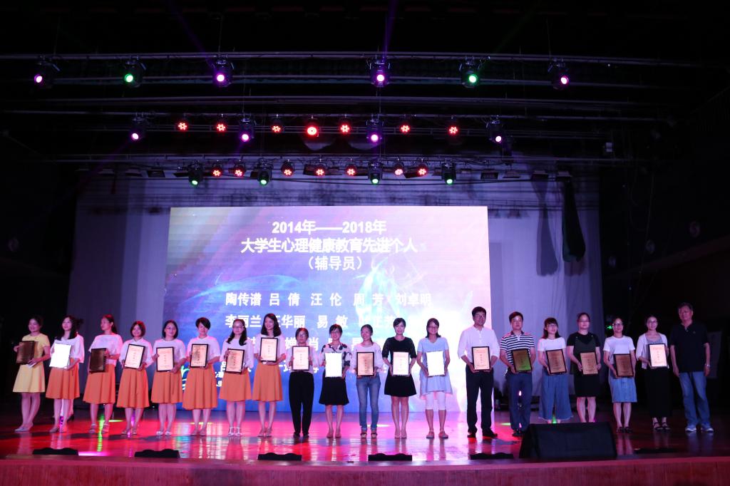 晚会上,授予10个学院“2014-2018年taptap点点体育大学生心理健康教育工作优秀集体”称号;授予13名二级学院领导、24名班主任和研究生导师、20名辅导员“2014-2018年taptap点点体育大学生心理健康教育工作先进个人”称号;同时还授予10个学院的朋辈心理互助组织“阳光团队”称号,107名朋辈心理互助员“阳光朋辈”称号。