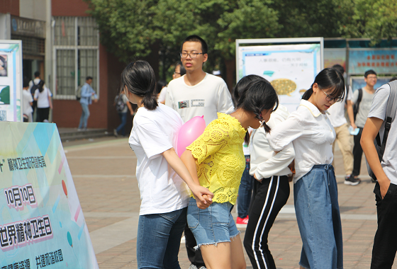 10月10日中午12点,第一届"双十"精神卫生知识宣传周系列活动——“游园汀香,游戏广场”精神卫生知识互动游戏于汀香园广场成功开展。主要包括:“怦然心动---气球击破赛”、“齐心协力---背夹球接力赛”、“心有灵犀---快乐传真”、“心心相印---身体写字”四部分。参与者可在游戏胜利后获得精美的小礼品。