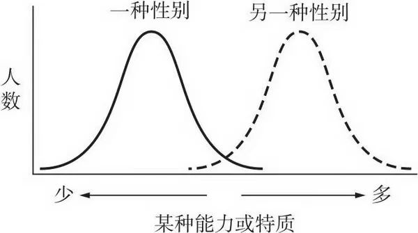 根据许多学者的研究统计,将拥有某种特质的人数绘制成图,得到的正态曲线都表示了男女之间的相似性会远大于差异性,并且同性别的内部差异反而更大。