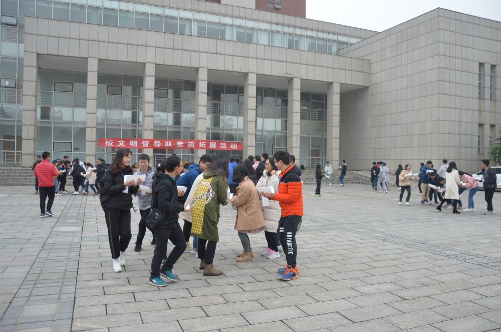 为了加强队员之间的交流,活跃组织气氛,培养良好的团队精神,2018年12月23日下午两点,云塘校区文明督导队在图书馆东侧举办了全体队员素质拓展活动。参加本次活动的有120余名队员及公寓中心柳联初、欧发老师。