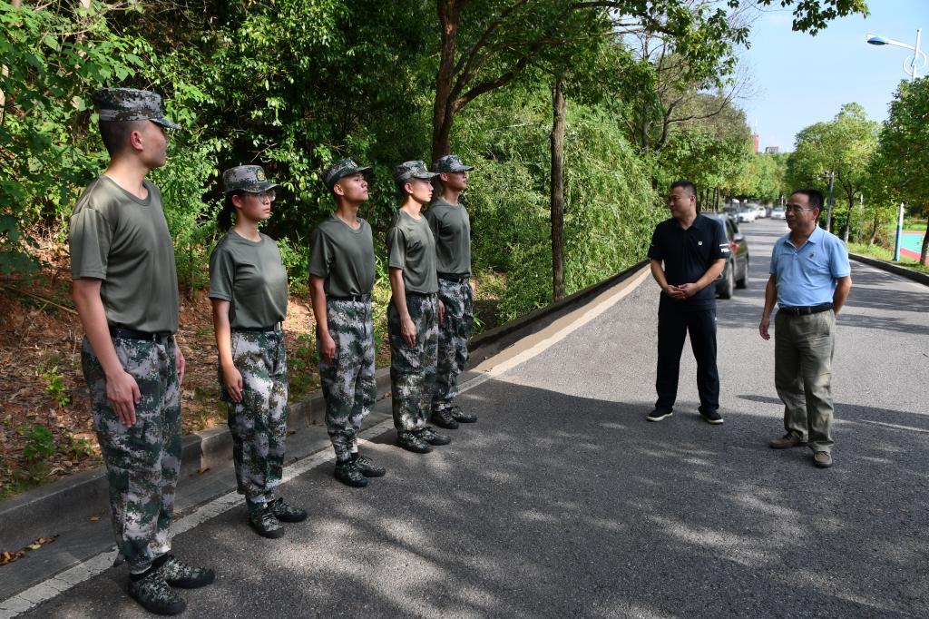 7月12日下午,国际工学院党委书记黄自力、党委副书记兼副院长乔法光和辅导员深入军训场地看望慰问集训教官,为集训教官送去关心关怀。