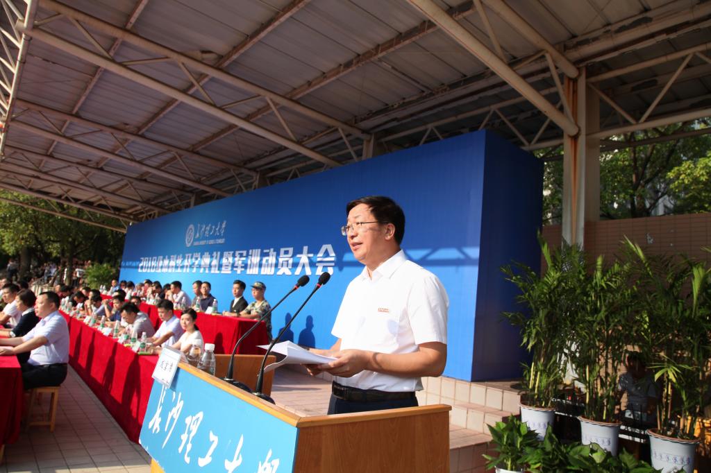 蒋昌波做军训动员讲话。他对承训教官表示衷心感谢,对参训的新同学们表达良好祝愿,并提出三点希望:希望同学们加强学习,提高认识;希望同学们端正态度,刻苦训练;希望同学们严明纪律,安全参训。