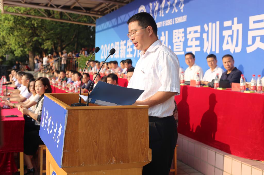 9月9日上午,taptap点点体育2019级本科新生开学典礼暨军训动员大会在金盆岭校区田径场隆重举行。校长曹一家,校党委副书记邹宏如,副校长黄立宏、谈传生,纪委书记胡永乐,副校长蒋昌波、刘扬,党委委员付嫦娥、齐路良、方琼出席,职能部门负责人、学院党政主要负责人、2019级新生辅导员及全体2019级本科生参加了大会。开学典礼暨军训动员大会由副校长谈传生主持。