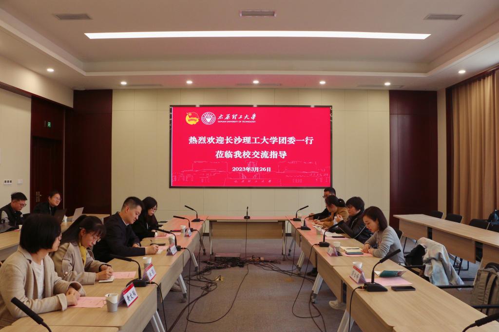 在太原理工大学,史薛伟代表学校互赠纪念品,他简要介绍了太原理工大学历史沿革、发展现状、科研情况及学校共青团基本情况,从团干部队伍建设、思想引领、青马工程、社会实践、校园文化等方面进行了经验分享和交流。此外,双方重点围绕创新创业工作进行了讨论交流,就如何挖掘、培育竞赛项目进行了经验交流。