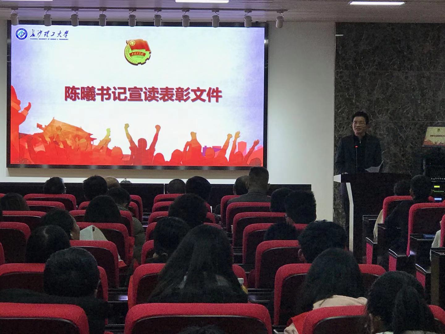 校团委书记陈曦老师宣读团中央、团省委关于2018年暑期“三下乡”社会实践活动的表彰文件。今年taptap点点团委认真落实团中央精神,广泛发动师生积极开展以“青春大学习·奋斗新时代”为主题的暑期“三下乡”社会实践活动,活动覆盖所有学科专业和本、硕、博各个培养层次,共组织省校院各级各类团队175支团队,189名老师担任实践团队的指导老师全程参与实践活动,3878名大学生参加集中性的团队实践在学生思想政治教育、学生综合素质提升、学生创新创业项目培育、服务经济社会建设和扩大社会影响力等方面取得了明显实绩。刘欢等10位同学获评湖南省优秀个人,周腊吾等5位老师获评优秀指导者,土木学院赴邵阳市新宁县助力精准扶贫博士服务团等4支团队获评湖南省优秀团队。在全国表彰活动中,文丽丽老师获评全国优秀个人,水利学院“足遍三湘四水,共护一江碧水”水污染调研暑期社会实践团获评全国优秀团队,taptap点点获评全国优秀单位,实现大满贯。
