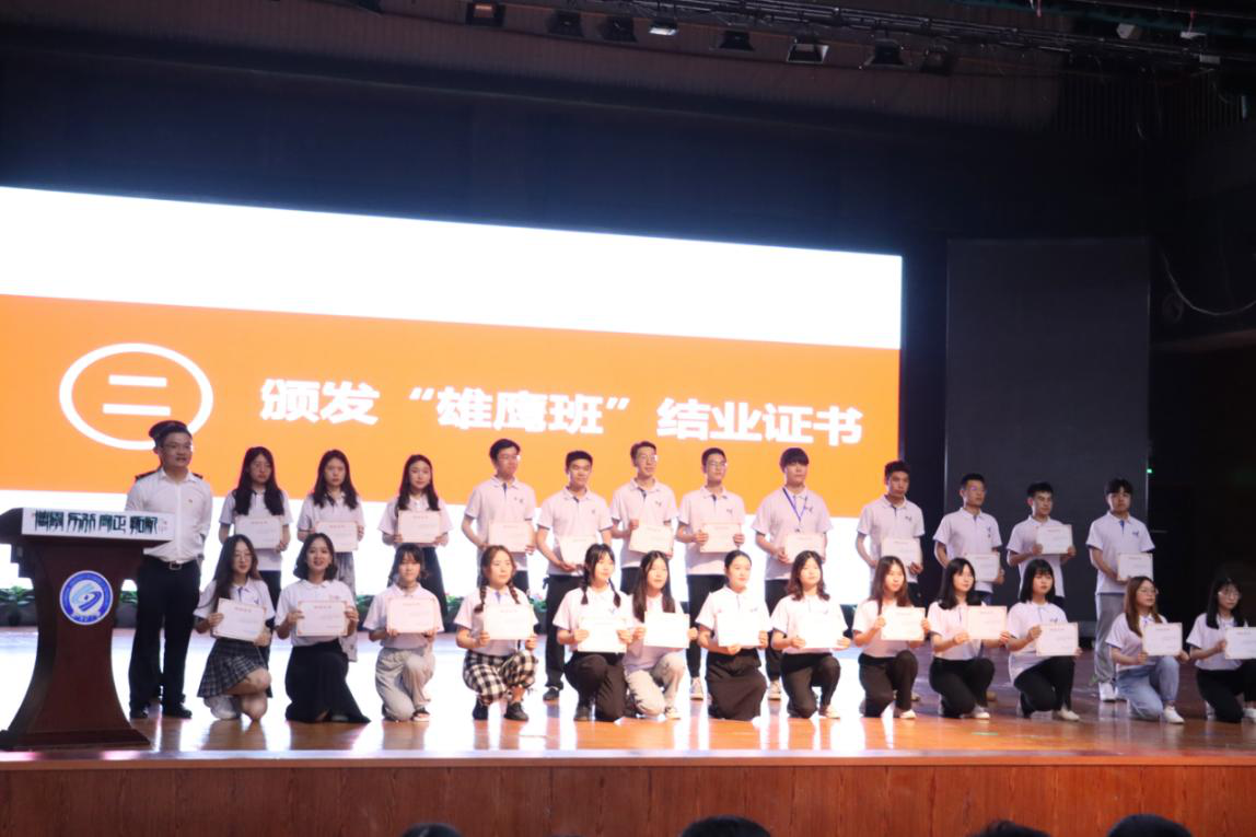 结业典礼上,王学成为“雄鹰班”学员们颁发结业证书。来自经管学院“雄鹰班”学员彭怡琳分享道:“青年是整个社会力量中最积极、最有生气的力量,国家的希望在青年,民族的未来在青年。愿作为新时代青年的我们,也能够凭一腔热血,谱一曲青春之歌。”