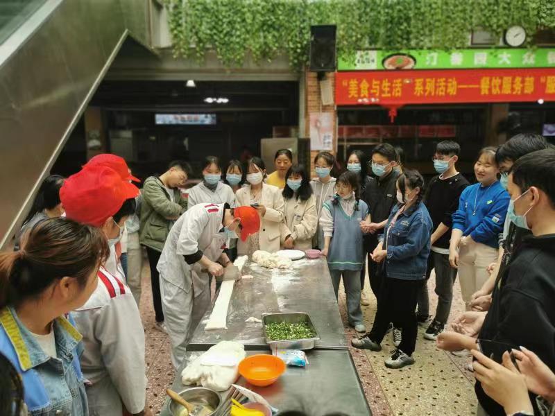 三、开展劳动教育,加强学生实践能力。继上学期百人包饺子活动后,本学期继续与后勤中心餐饮服务部合作开展了“美食与生活”系列活动,取得良好的育人成果。