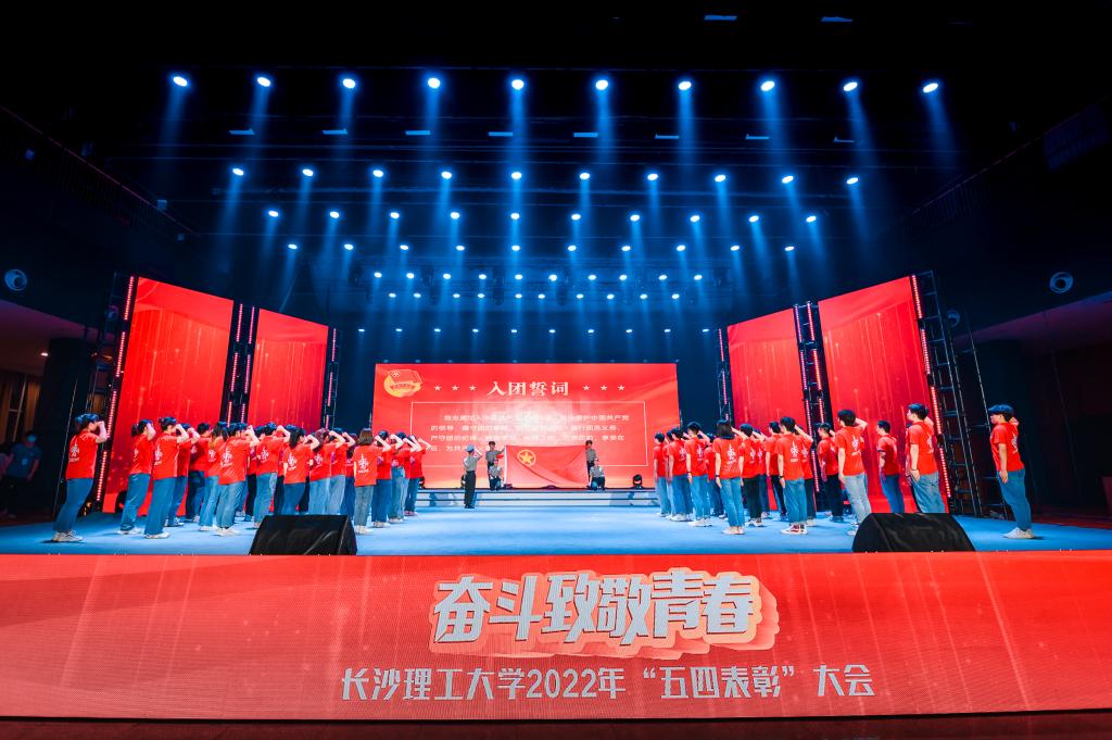 “我志愿加入中国共产主义青年团,坚决拥护中国共产党的领导……”50名新入团团员面向鲜艳的团旗庄严宣誓,全场青年团员自发起立共同承诺要让听党话、跟党走成为自觉追求,立志在实现中华民族伟大复兴的时代洪流中踔厉奋发、勇毅前进,宣誓仪式将大会推向高潮。