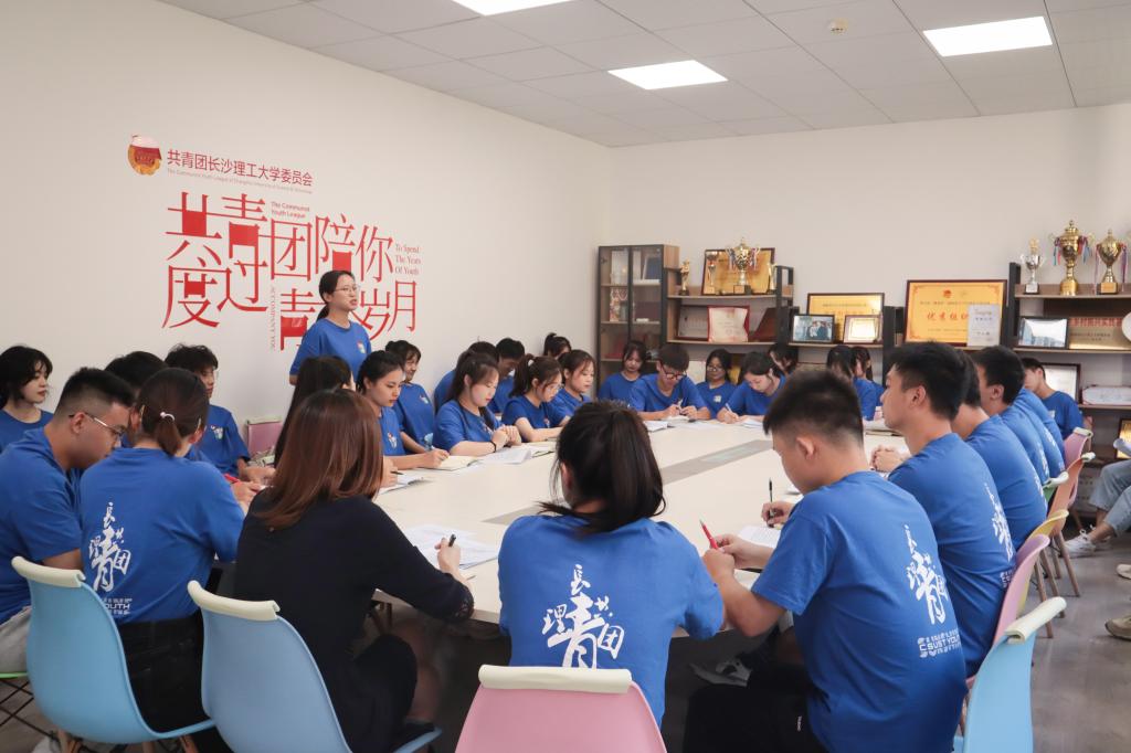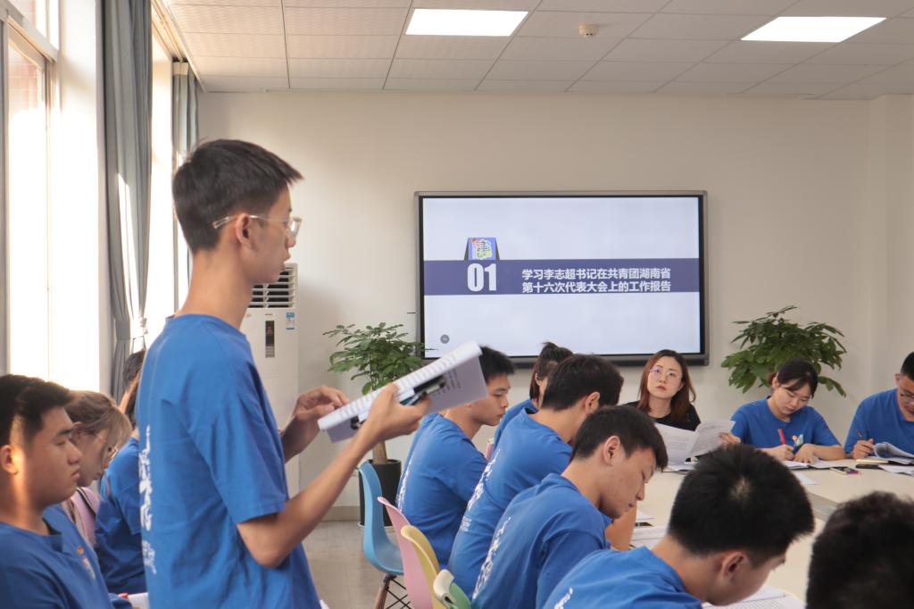 此后,陈璐莎带领全体成员共同学习共青团湖南省委书记李志超在共青团湖南省第十六次代表大会上的工作报告,各部门成员积极发言,热烈讨论。校团委基层团建部单基焕分享了与学长相处的故事,“我们学生干部应如志超书记所言,争做青年友,不做青年‘官’”。校学生会科技部陈嘉瑜受到报告启发后谈到,学生干部需要不断思考和探索提升科创竞赛项目质量的方法,营造“人人参与”的校园科创文化氛围。陈璐莎强调,taptap点点共青团工作应以人才培养为中心,服务全面建成百强大学大局,着力提升“硬指标”与“软实力”,促进科技创新能力提升,丰富校园文化内涵。