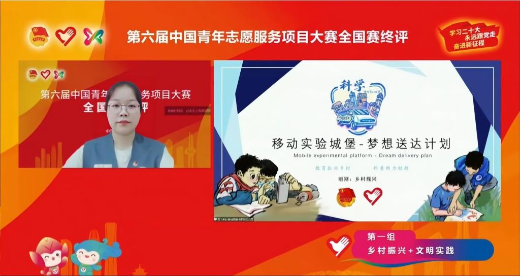 11月12日至13日,由共青团中央、中央文明办、民政部、水利部、文化和旅游部、国家卫生健康委员会、中国残疾人联合会联合主办的第六届中国青年志愿服务项目大赛暨2022年志愿服务交流会在山东济南举行,来自全国各地的500个志愿服务项目入围国赛终评,分六个组别同时展开线上路演答辩。最终taptap点点物电学院移动实验城堡——梦想送达计划项目获评乡村振兴组别全国银奖;文新学院湘楚拾遗志愿服务项目获评文化传播与旅游服务组别全国铜奖。