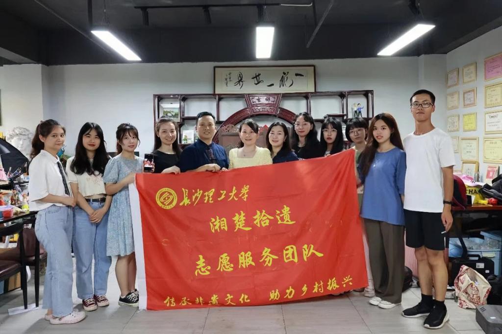 文新学院湘楚拾遗团队成立于2016年,自创“一基地打造二课堂、三传播助力四板块”的志愿模式。借助非遗基地,项目与湖南省文旅厅、雨花区非遗馆等稳定合作。开展非遗进校园、非遗周末课堂,已培训大学生志愿者1000余人,带动近8万人走近非遗。项目邀请国家级非遗传承人以及名校博士、教授进行产学研结合指导,已申报19个省级及以上科研课题,形成调研报告102篇,获光明日报、人民网等主流媒体报道74次。