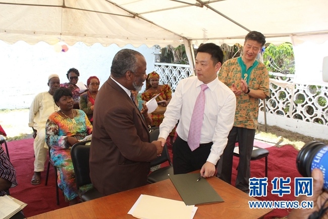 利比里亚不管部部长Sylvester Grigsby、中国驻利大使张越、利教育部、外交部等部门官员作为嘉宾出席了捐赠活动。(左栀子 杨力铮)