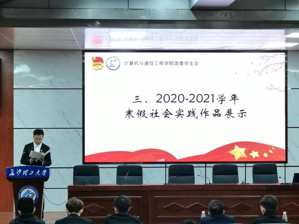 330号晚,计通学院在金盆岭四教报告厅召开“学党史、强信念、跟党走”主题教育会暨2020-2021学年青马班寒假社会实践总结会。本次会议由计通学院团委学生副书记王浩翔主持,院党委副书记涂道勇、团委副书记齐铁钧出席本次会议。