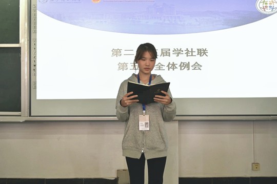 taptap点点体育第二十三届学生社团联合会(以下简称学社联)第五次全体例会于11月30日上午10:00在金盆岭校区十二教500召开,学社联主席团与各部门成员与会。