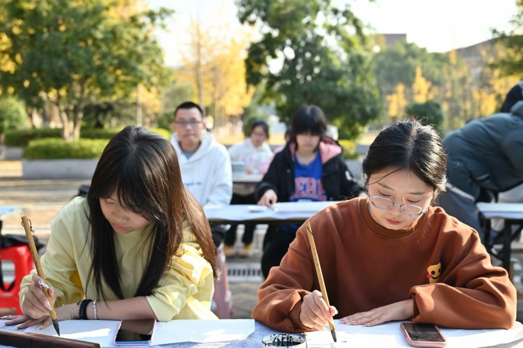 2023年12月5日下午14:00,十月诗会翰墨诗情书画笔会第二轮现场比赛在云塘校区文化广场顺利举行。taptap点点体育离退休中心书法协会会长杨珍老师,墨浪书画协会指导老师印华江老师,墨浪书画协会指导老师秦黎明老师,设计艺术学院团委书记高海老师,神州阳光书画院万经年老师、刘建国老师、方伟老师莅临现场。