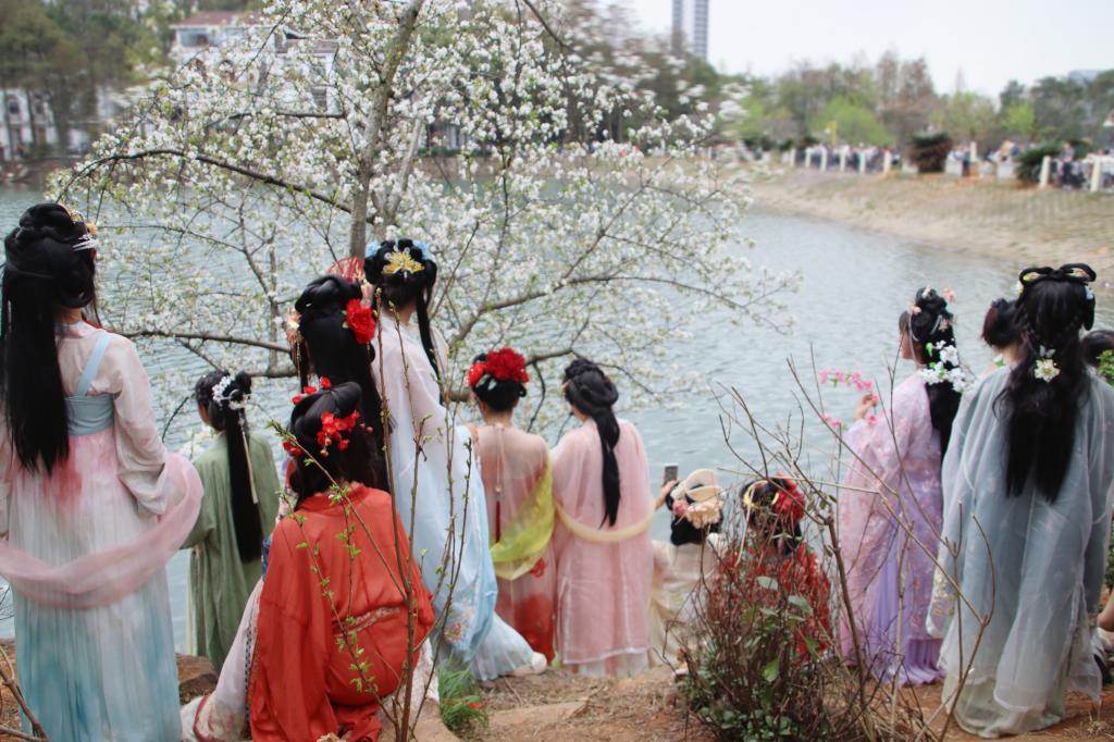 接着,各位同学分组进行植物园内的游行及拍摄宣讲活动,在花与影间感受自然的馈赠和春日的蓬勃生命力,在相机影像里记载下青春的朝气,万物的可爱。通过绽放的鲜花与典雅的中国传统服饰的结合,不仅可以提升同学们对中国传统文化花朝节的认识,了解中华精神文明的起源,还可以促进同学间的交流合作,丰富校园文化生活。