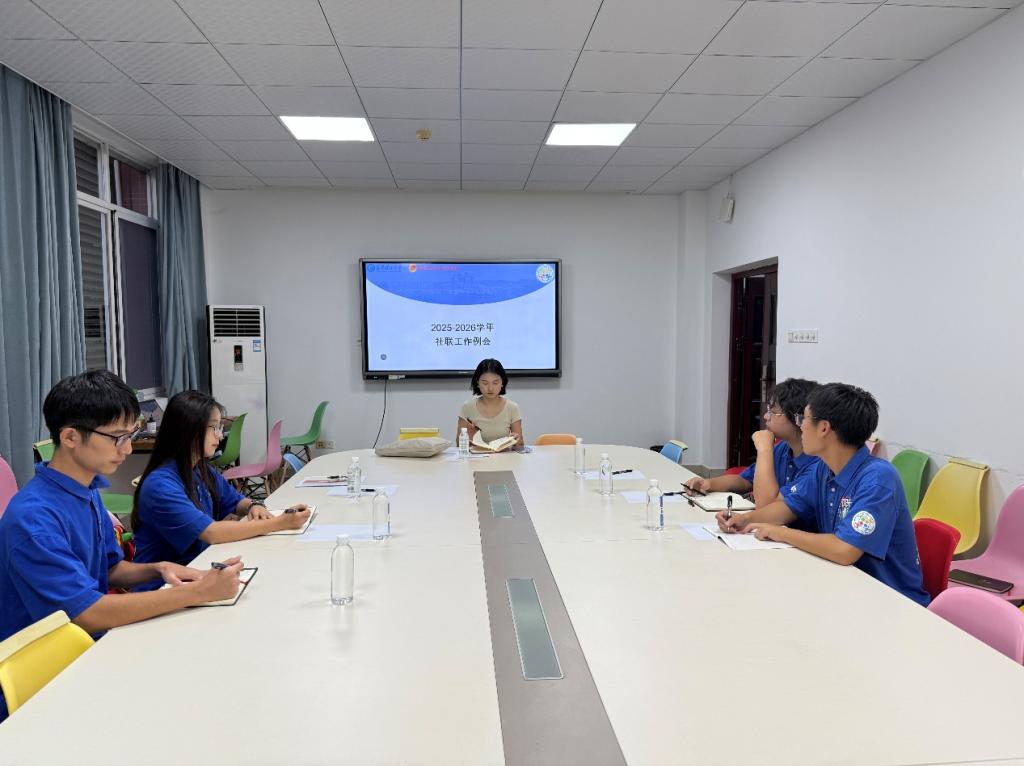 2025-2026学年第一学期学生社团联合会(以下简称学社联)第一次工作例会于9月17日晚18:30在云塘校区学生活动中心A301顺利召开。校团委挂职副书记张歌林、校团委尹纷老师出席会议,学社联代表与会。