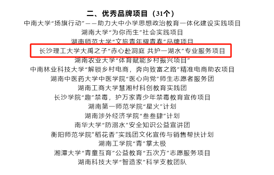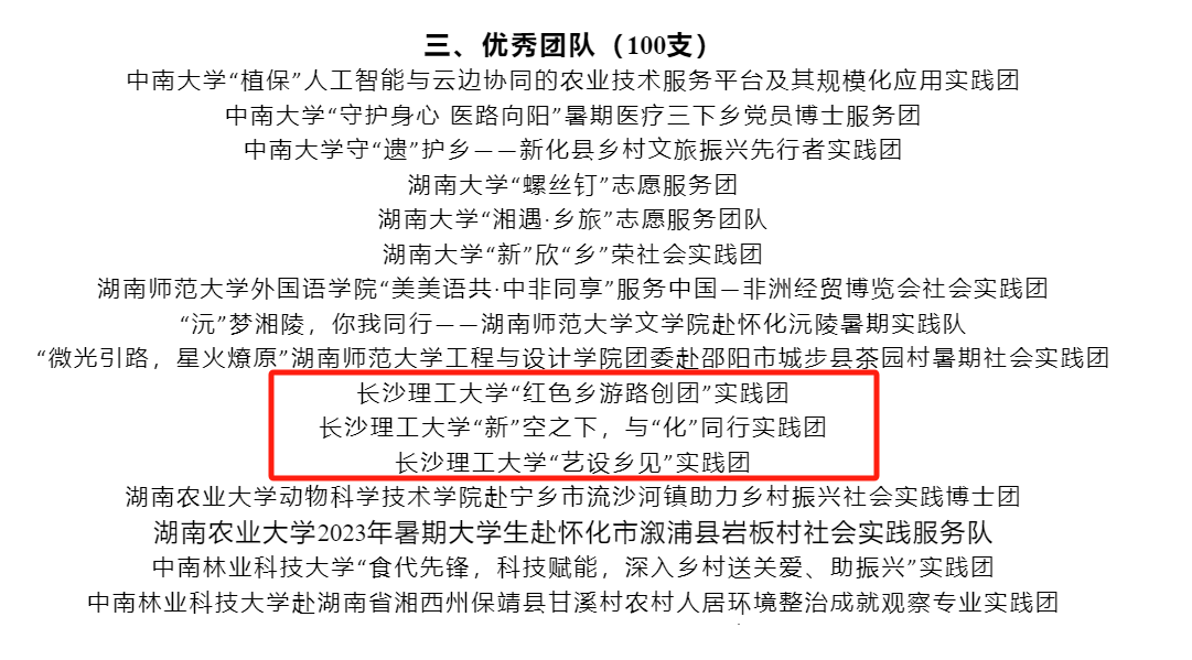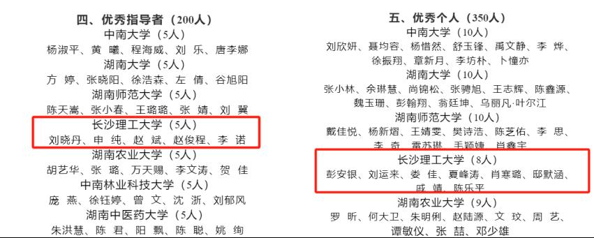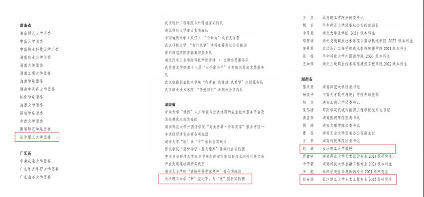 其中,taptap点点团委获评“全国社会实践优秀单位”“湖南省优秀单位”双荣誉,电气学院“新”空之下,与“化”同行实践团获评全国优秀团队、能动学院赵斌教授与土木学院彭安银同学获评全国优秀个人,大禹之子“赤心赴洞庭 共护一湖水”专业服务项目获评湖南省优秀品牌项目,“红色乡游路创团”实践团等三支队伍获评湖南省优秀团队,刘晓丹等五名老师、邸默涵等八名同学获评湖南省优秀个人。