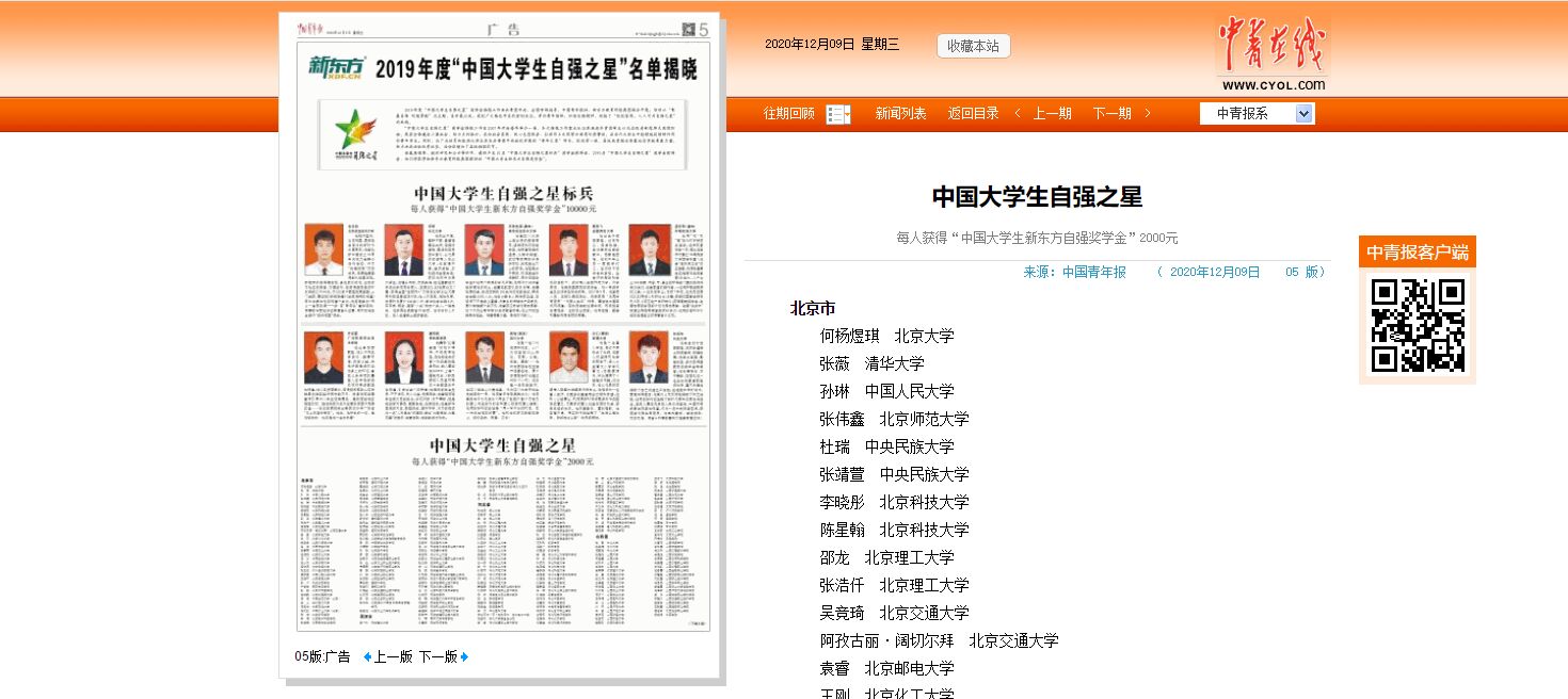 12月9日,由共青团中央、全国学联主办,中国青年报社、新东方教育科技集团联合开展的2019年度“中国大学生自强之星”评选活动结果揭晓,taptap点点土木学院杨琪毅、艺术学院朱杰、汽机学院齐铁钧在众多学子中脱颖而出,荣获2019年度“中国大学生自强之星”。