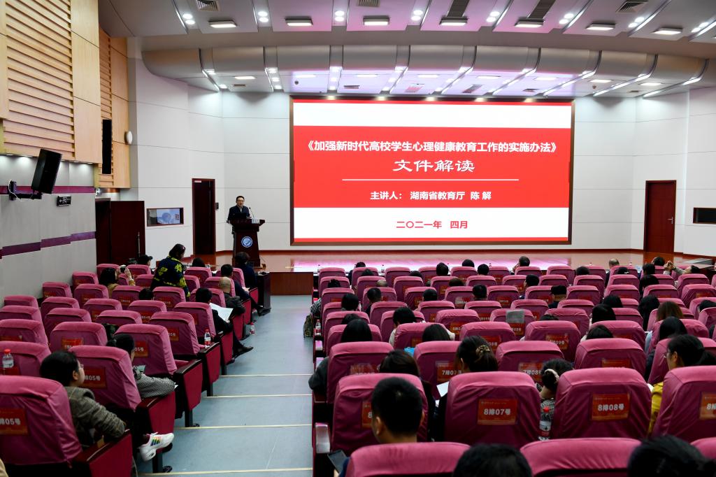 陈解对学习贯彻落实中共湖南省教育工委、湖南省教育厅近期下发的《加强新时代高校学生心理健康教育工作的实施办法》作了辅导报告。他指出,《办法》是做好新时代高校学生心理健康教育的顶层设计的系统性、规范性的文件,旨在从完善课程体系、创新活动载体、优化辅导咨询、强化预警干预、推进平台建设五个方面推动湖南省高校大学生心理健康教育的长效机制建设,接下来,要从做好部署、搭建平台、开展培训、广泛宣传这四个方面推动《办法》的贯彻落实,确保政策落地生效。