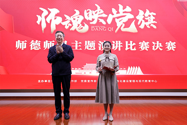 经过近两个小时的激烈角逐和专家评审,材料学院谢易真获得一等奖,马克思主义学院钟芙蓉、化学学院张航、国际学院冀文秀获得二等奖,建筑学院邹芳、艺术学院肖虹、电气学院邓丰、法学院王寰、水利学院綦丽、交通学院翟曌获三等奖。与会领导为获奖选手颁发了证书和奖杯。