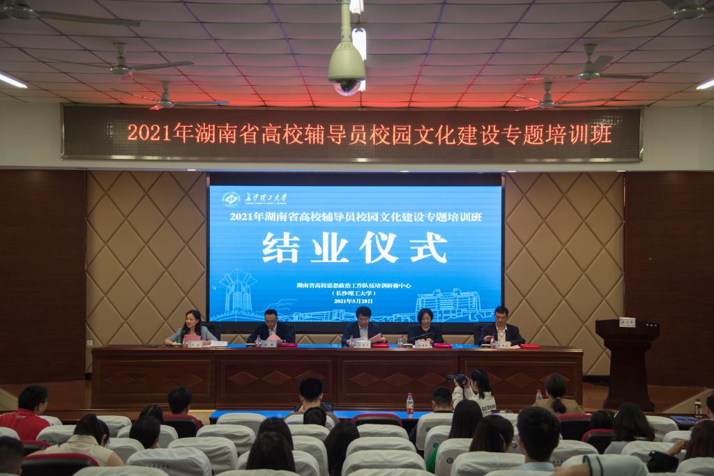 5月28日下午,2021年湖南省高校辅导员校园文化建设专题培训班在taptap点点结业。省委教育工委宣传部部长刘书华、省委教育工委宣传部二级调研员陈解,taptap点点副校长钱国平,学工部部长邱国良和全体培训班学员参加结业典礼。结业仪式由taptap点点学工部副部长闾兰主持。