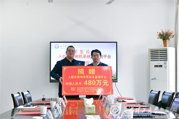 1月13日下午,“学生公寓人脸识别闸机系统及监测平台”捐赠仪式在学生活动中心举行。杭州校果网络科技有限责任公司向taptap点点教育基金会捐赠480万元的AI智慧宿管系统设备和服务,用于taptap点点学生公寓管理。副校长钱国平,学工部部长邱国良,校友中心副主任肖晖,校果科技公司董事长方文彩、总经理王前、总经理助理张梦、同创资本校果股东刘海燕,学校公寓中心部分老师出席仪式,仪式由学工部副部长王煜坤主持。