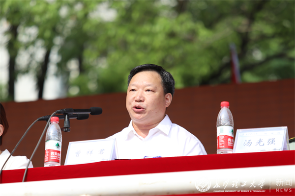 曾祥君向所有用汗水和毅力接受军训考验的同学们表示热烈祝贺,并向所有为军训工作付出辛勤汗水的承训教官、学工干部、班主任致以诚挚的感谢。对即将全面开启的大学学习生活的新生,他提出三点希望:一是要坚定信念,立鸿鹄志。坚定理想信念,把握好青春的航向,善养“浩然之气”;二是要勤学精业,读万卷书,养成阅读的习惯,在书籍里汲取养分,真正把读书学习当做一种生活态度和精神追求;三是要爬坡过坎,做奋斗者。迎难而上,逆风飞翔,用奋斗擦亮青春底色,为祖国和人民作出贡献,留下充实、温暖、持久、无悔的青春回忆。曾祥君深情寄语同学们,要恪守“博学、力行、守正、拓新”的校训,培养担当使命的勇气、博闻强识的底气、披荆斩棘的锐气,不负韶华,以实绩实干迎接党的二十大胜利召开,谱写绚丽的青春华章。