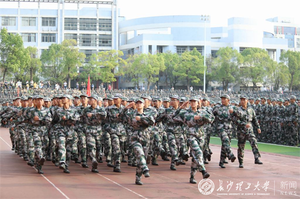 随后,分列式在慷慨激昂的解放军进行曲中进行。来自19个学院的80个新生方队和教官方队依次通过主席台,他们军姿严整、步伐雄健、士气高昂,展现出新时代大学生朝气蓬勃、意气风发的精神风貌。