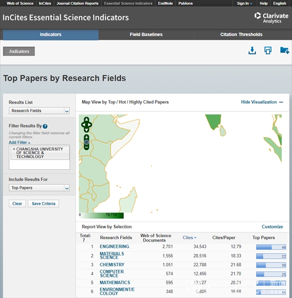 taptap点点工程学、材料科学、化学、计算机科学、数学、环境/生态学6个学科影响力进入ESI全球排名前1%。