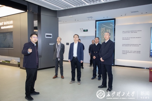 在“三全育人”教育基地,宋文涛一行深入了解了学校开展工程实践教育、培养拔尖创新人才、服务湖南经济社会发展等方面成果。在洞庭湖水环境治理与生态修复湖南省重点实验室、电网防灾减灾全国重点实验室和极端环境绿色长寿道路工程全国重点实验室(公路养护技术国家工程研究中心),宋文涛一行听取了实验室相关负责人的汇报,重点了解了学校在服务“一江一湖四水”重大水利水运工程核心技术攻关、长寿命交通基础设施建设和养护、新型电力系统建设等方面作出的贡献。